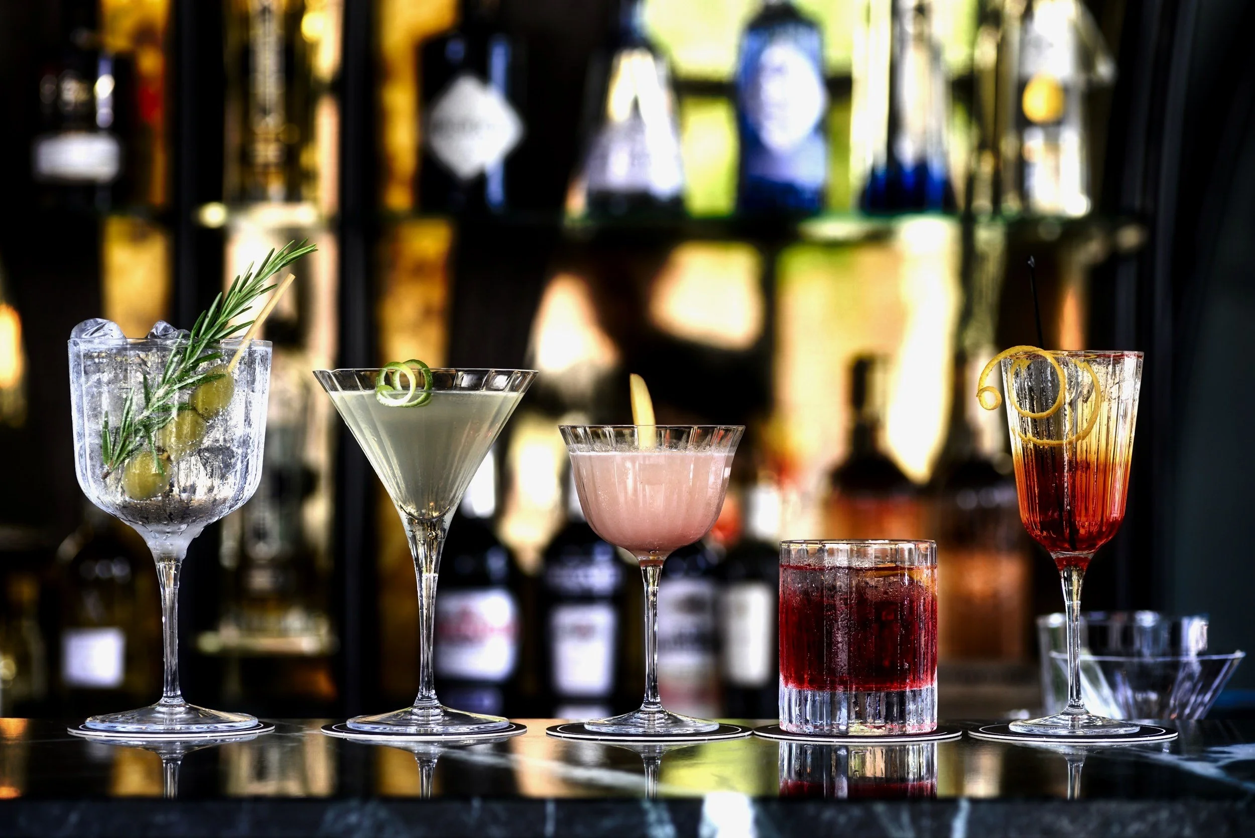 We craft every cocktail using fresh, high-quality ingredients—homemade mixers, syrups, purées, fresh juices, premium sodas, and sparkling waters—to ensure maximum flavor and freshness in every pour.